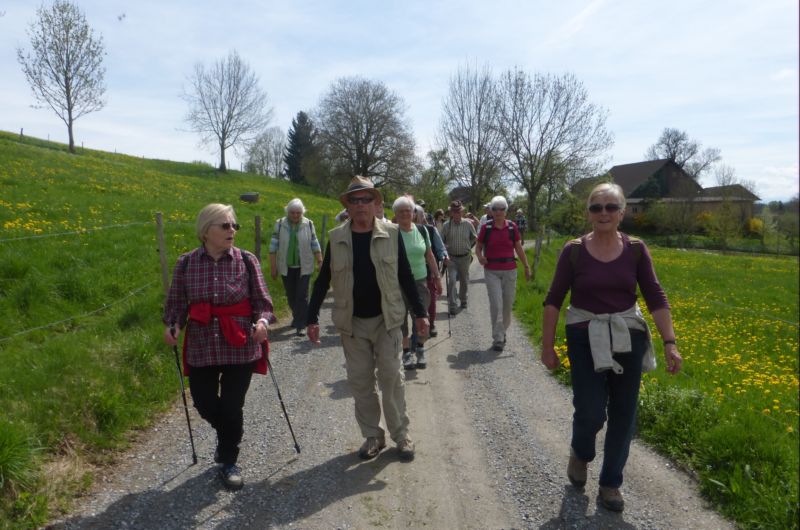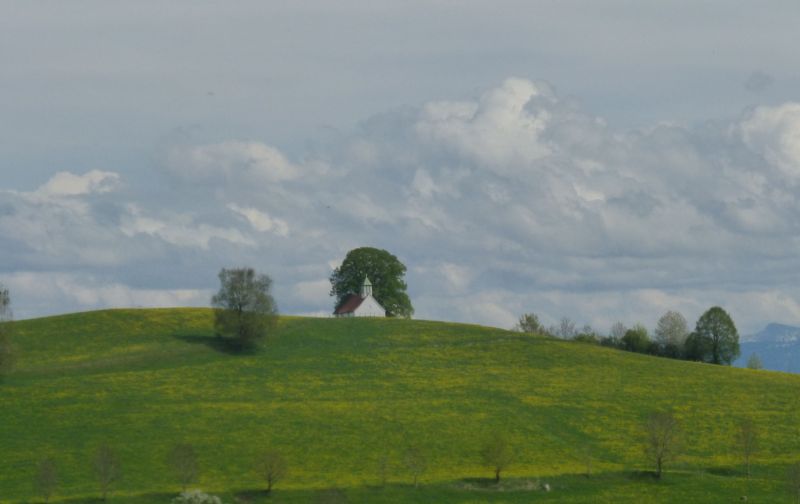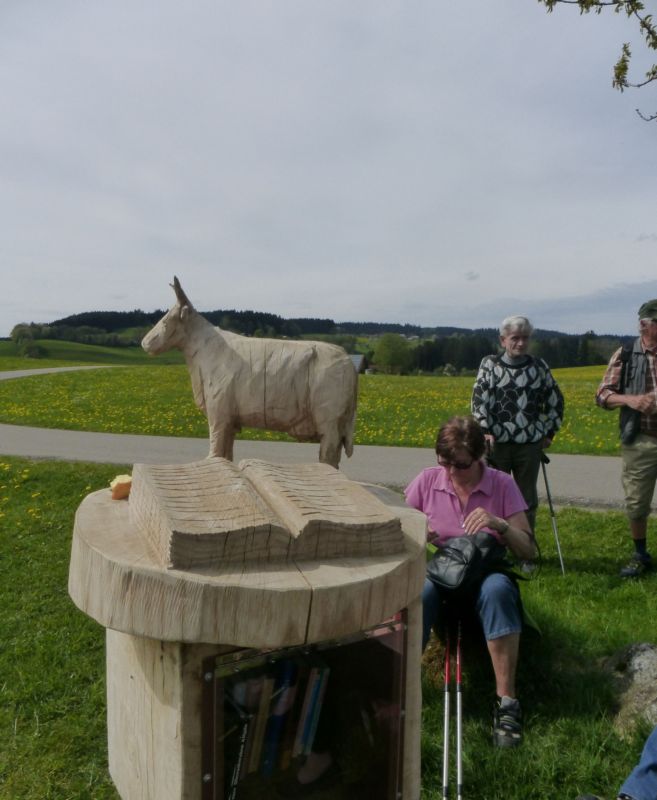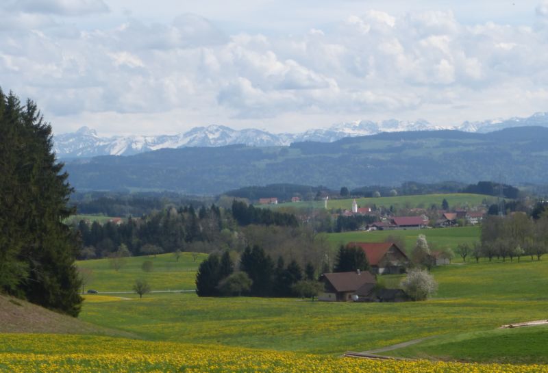 Der Ort wurde in westlicher Richtung verlassen und es ging in die Frühlings- Fluren nach Hinterberg, Schmitten, zur Luppenmühle und weiter nach Pfauen hoch. Von hier Richtung Bodnegg zum Allgäu- Blick mit seiner neu eingerichteten Bücherei. Hier war hatten wir einen richtig tollen Blick über das Allgäu bis zu unseren Hausbergen, der Nagelfluhkette.